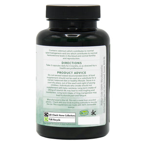 Fertility Men contains selenium which contributes to normal spermatogenesis and zinc which contributes to normal testosterone levels in the blood and normal fertility and reproduction.