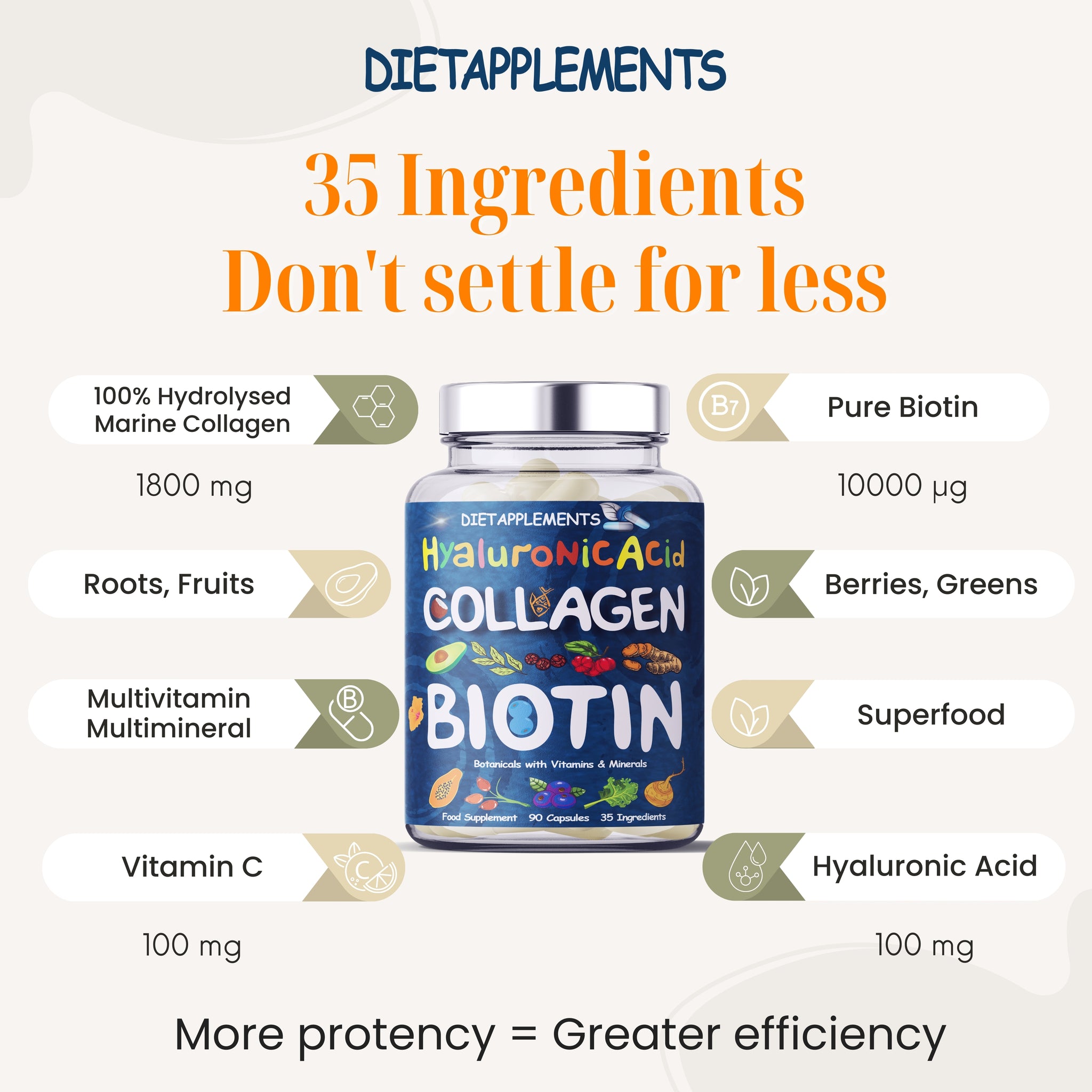 Marine Collagen, Hyaluronic Acid & Biotin Complex gluten free, halal, kosher and non-GMO.