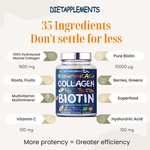 In addition to marine collagen capsules, this powerful formula also includes Biotin 10,000mcg, a potent vitamin that helps strengthen hair and nails, promoting thicker, shinier hair and healthier nails. Hyaluronic Acid is included to help promote hydration and smooth, glowing skin, making this supplement the perfect addition to your beauty and health routine.