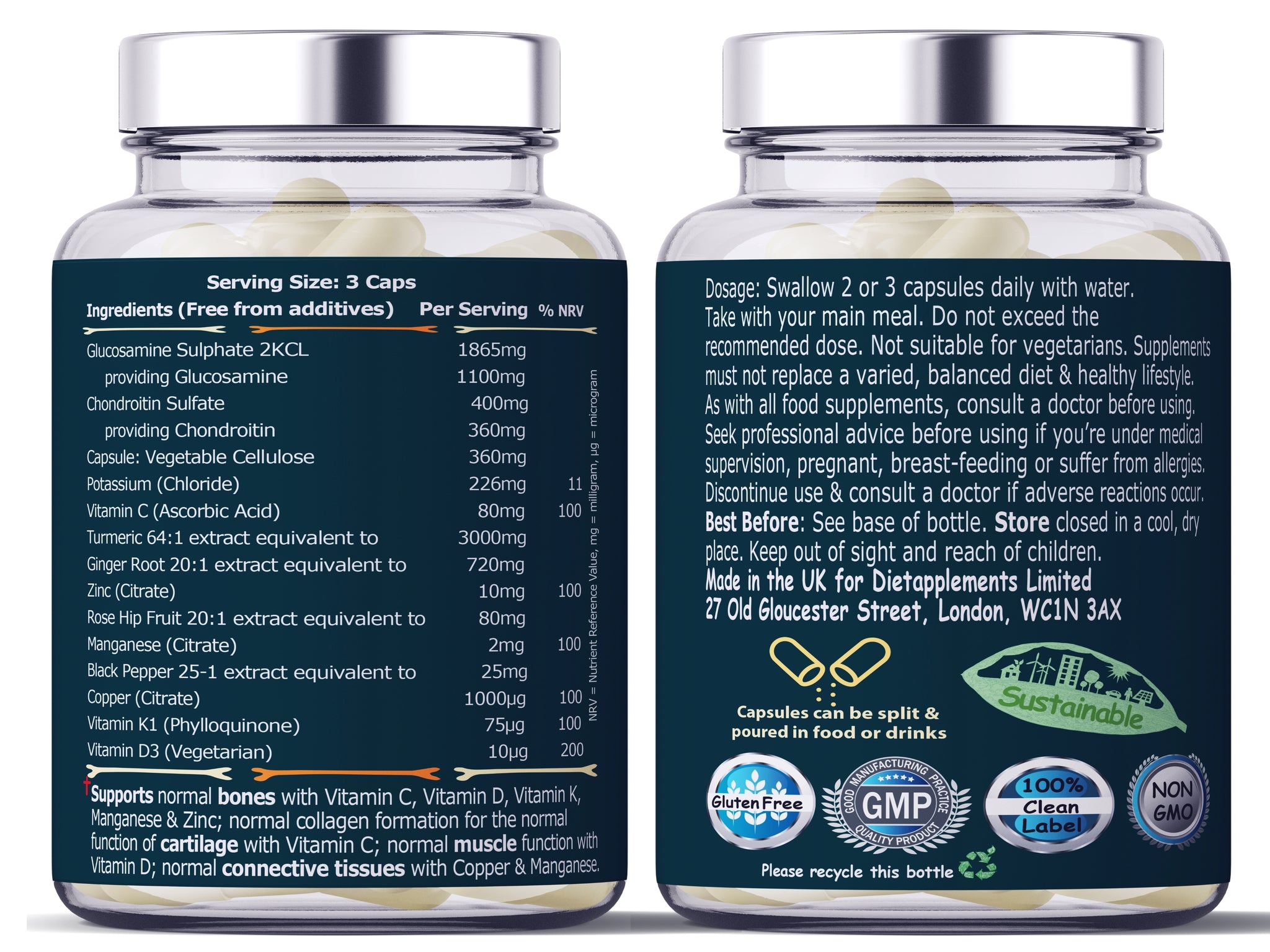 Packed with essential Vitamins C, D, K, and minerals like Zinc, Manganese, Copper, and Potassium, this complex supports overall joint function and bone health. Whether you're looking for Glucosamine for joint pain or seeking a comprehensive Glucosamine Chondroitin Supplement for joint support, this product offers the perfect solution for maintaining healthy joints and bones.