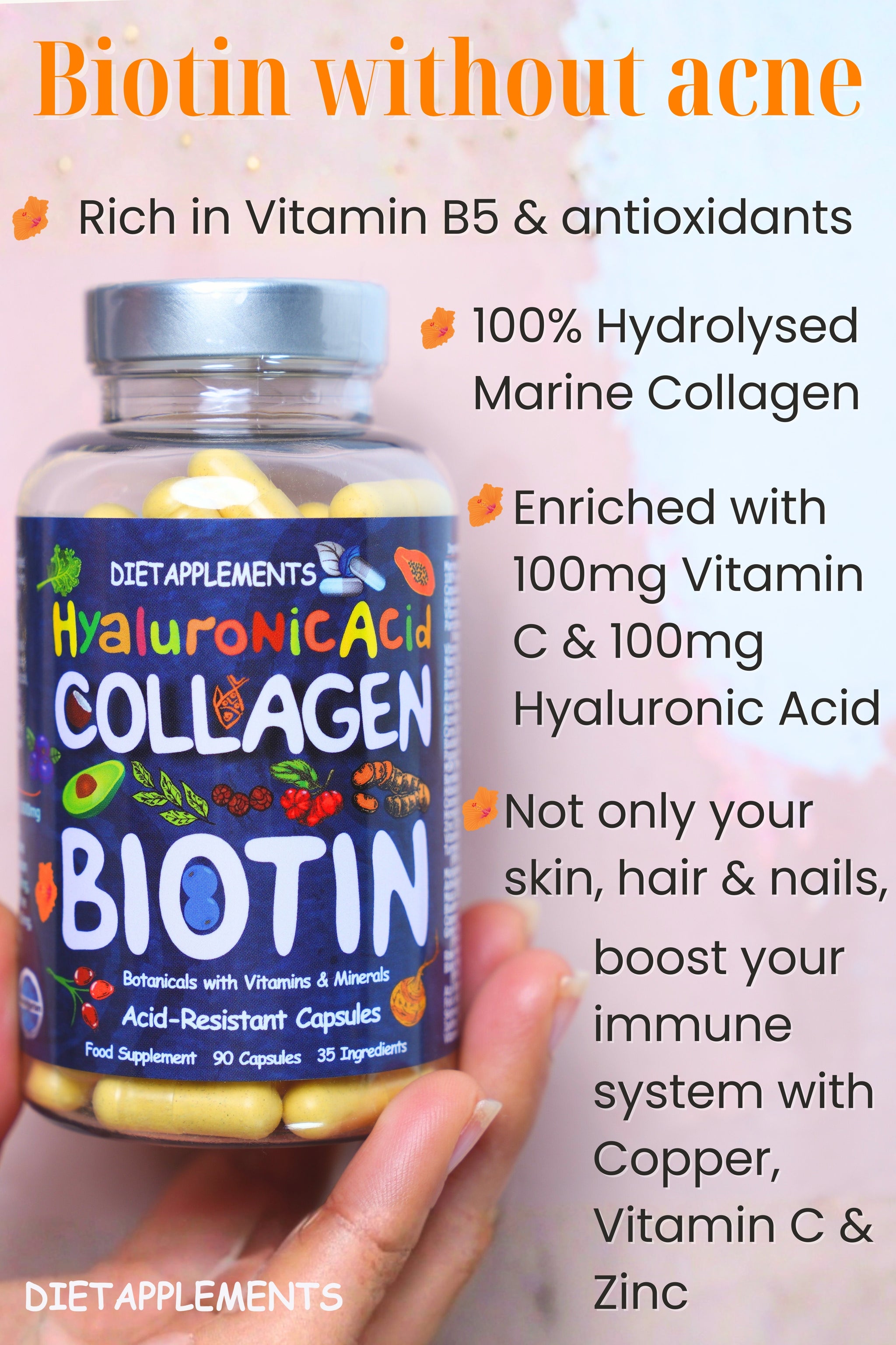 Marine Collagen, Hyaluronic Acid & Biotin Complex gluten free, halal, kosher and non-GMO.