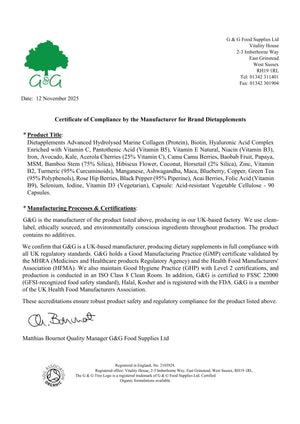 Marine Collagen, Hyaluronic Acid & Biotin Complex gluten free, halal, kosher and non-GMO.