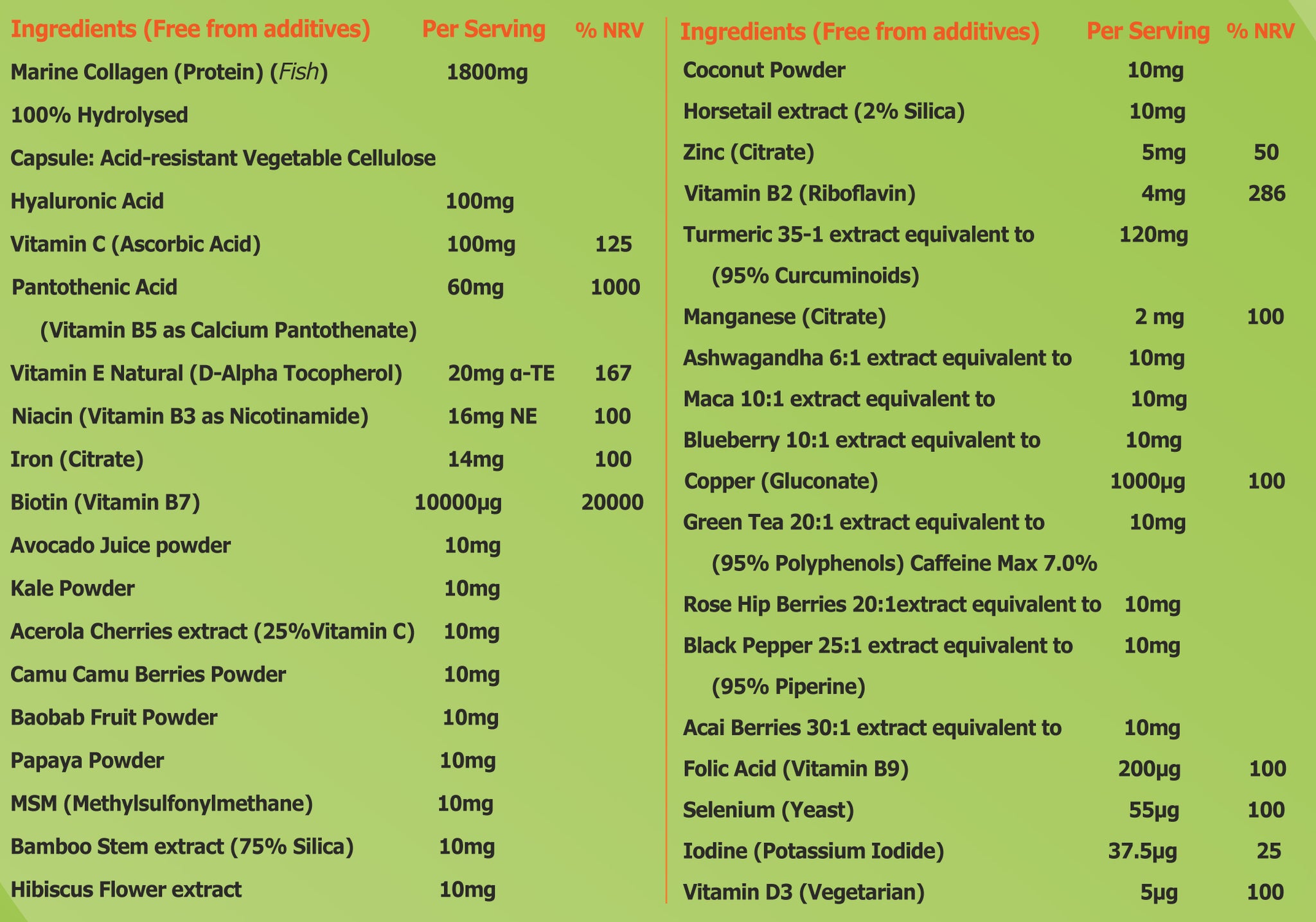 Marine Collagen, Hyaluronic Acid & Biotin Complex gluten free, halal, kosher and non-GMO.